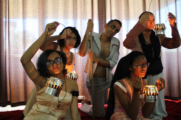 O elenco é composto pelos alunos/atores Albérico Almeida, Daniele Ribeiro, Giovanna Guimarães, Monica Vasconcelos, Paula Letícia e Suzana Da Silva que apresentam seus personagens estabelecendo um sofrimento devastado pela guerra e morte de entes queridos num sertão de fome e miséria.