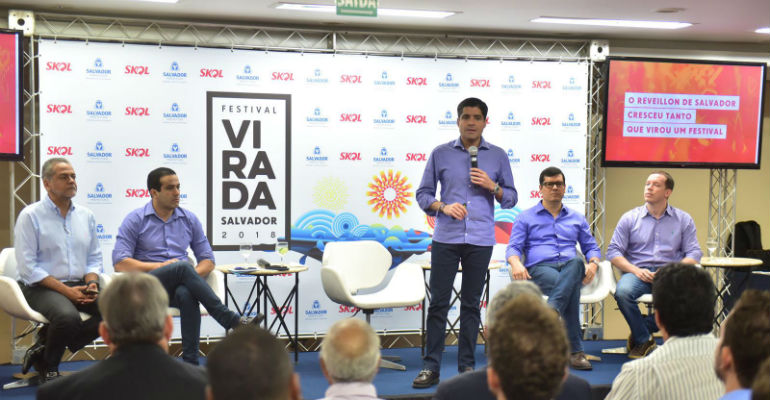 Nesta terça-feira (5), o prefeito de Salvador, ACM Neto, divulgou em coletiva de imprensa as novidades para as festividades de ano novo na capital baiana, que ganhou o nome de “Festival da Virada Salvador 2018”.
