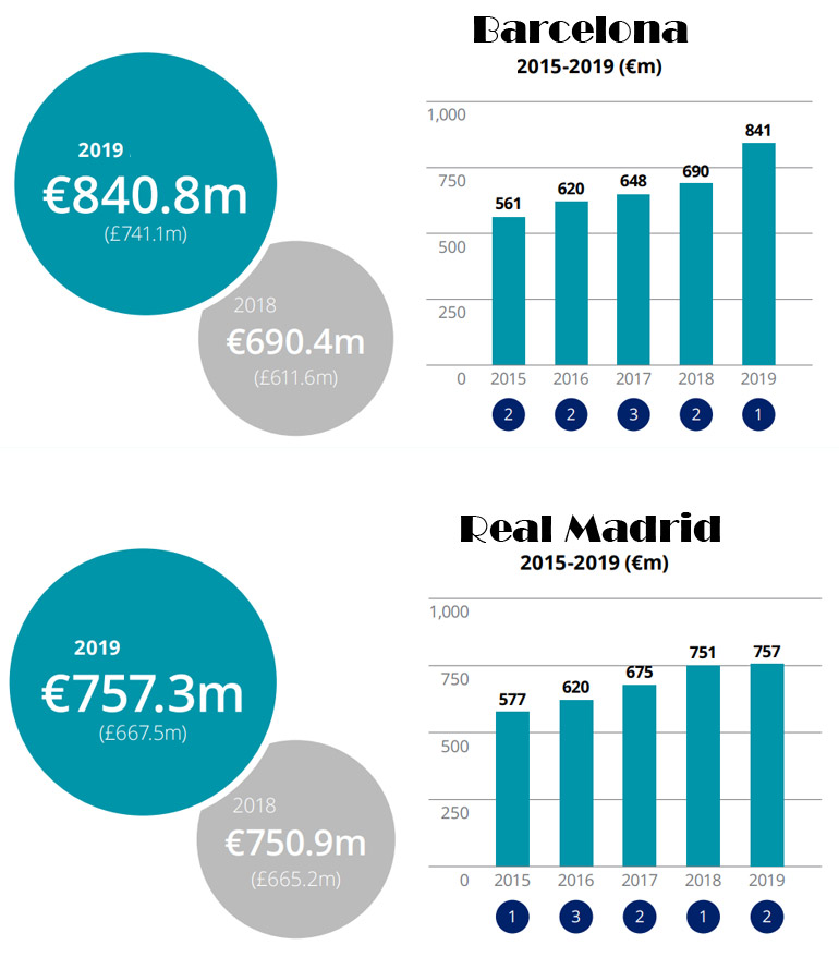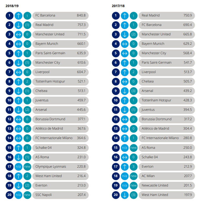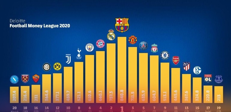 De acordo com o relatório da Deloitte, o Barcelona "é um exemplo claro de um clube que se adapta a um mercado em evolução, reduzindo sua dependência de receitas derivadas de direitos de TV e colocando o foco nas receitas que é capaz de controlar diretamente. As operações comerciais do clube geraram 383,5 milhões de euros, número superior ao faturamento total do clube que está em décimo segundo lugar no ranking, o Borussia Dortmund.