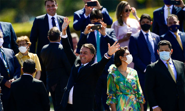 O presidente Jair Bolsonaro cumprimentou populares numa cerimônia de cerca de meia hora no gramado do Palácio da Alvorada para celebrar o Dia da Independência. Acompanhado da primeira-dama Michelle Bolsonaro, do vice-presidente Hamilton Mourão, de ministros e do presidente do Senado, Davi Alcolumbre, o presidente assistiu ao hasteamento da bandeira e a manobras de sete aviões da Esquadrilha da Fumaça.