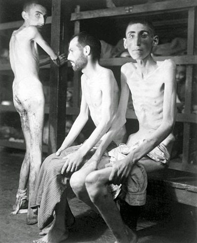 Prisioneiros em campo de concentração nazista (foto: Enciclopédia do Holocausto)