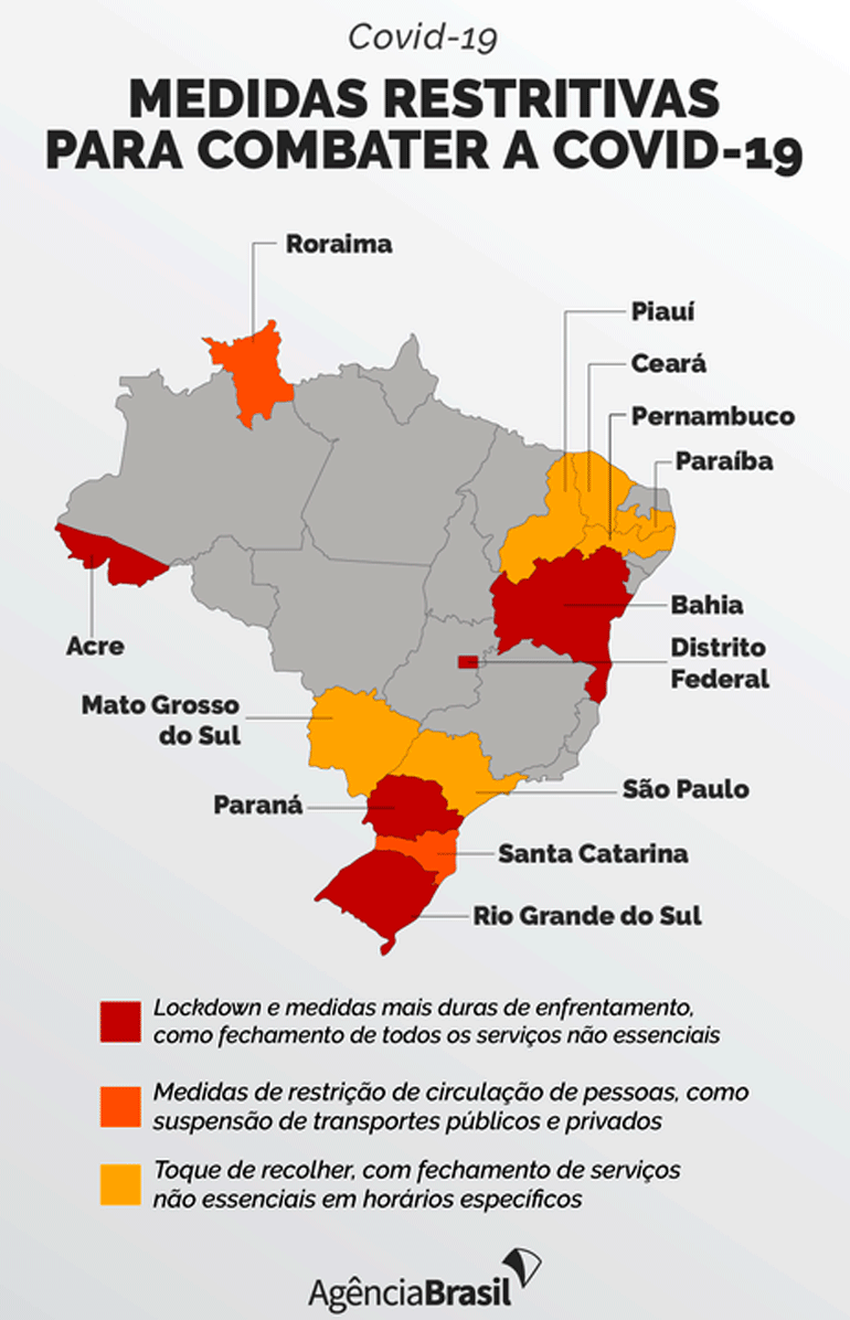 Com cerca de 1,5 mil mortes diárias, diversos governadores resolveram retomar medidas mais drásticas como o toque de recolher e o lockdown.