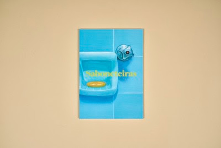 Materiais e texturas são parte da identidade das obras dessa série, que retrata -- em uma vasta gama de cores e composições minuciosas -- elementos vistos como banais, mas que nos transportam a memórias e lugares de afeto associados ao ambiente doméstico. “Estão presentes um mosaico exibindo uma arara de cores formidáveis originário de uma casa em Manaus e azulejos em estilo art noveau descobertos na Rua 25 de março, em São Paulo. A proliferação de estilos de azulejos compõe o tema da série junto aos receptáculos de sabonetes em si”, escreve Gallagher no texto curatorial apresentado no livro.