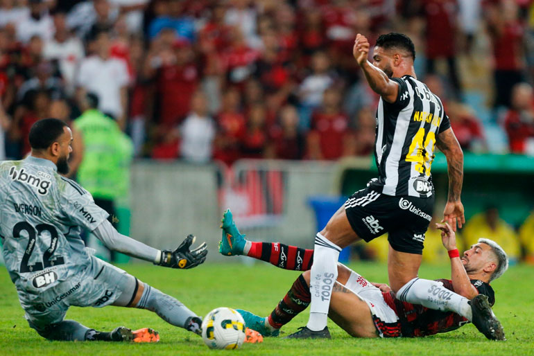 A superioridade rubro-negra aumentava a cada ataque. Aos 14 minutos, após triangulação, Pedro escorou de calcanhar e João Gomes bateu de primeira, para mais uma defesa do goleiro atleticano, que salvou o clube mineiro novamente aos 37, em cabeçada de Pedro após cruzamento de Rodinei.