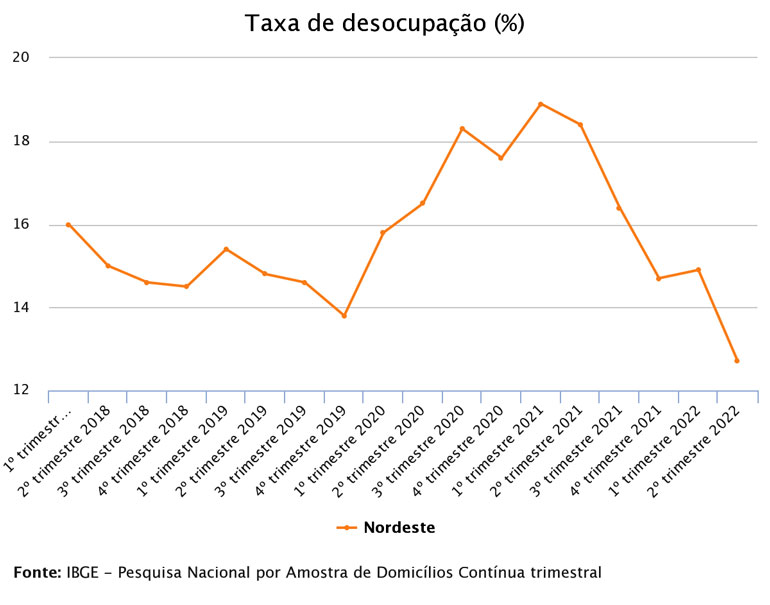 A taxa de desocupação apresentou queda em 22 unidades da federação no 2º trimestre de 2022, frente ao tri anterior, refletindo a redução, disseminada nos estados, do índice nacional de 11,1% para 9,3% no período.