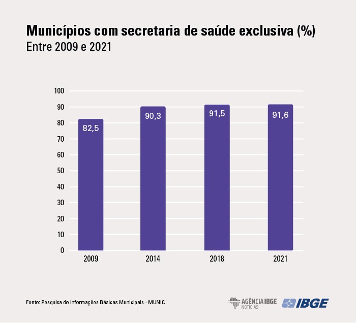 Mais de 90% dos municípios tinham secretaria de saúde exclusiva em 2021