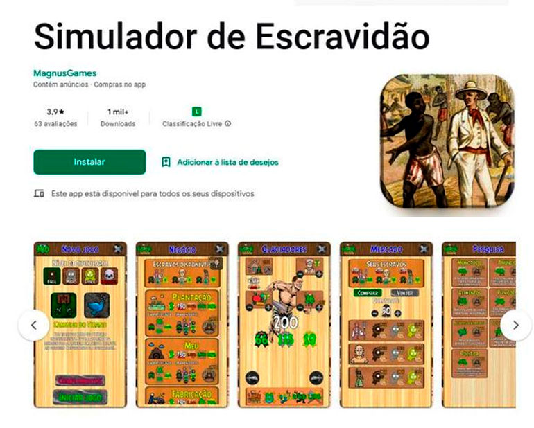 “Trata-se de um jogo em que o usuário faz o papel de proprietário de escravos e pode escolher entre a possibilidade de fazer lucro e impedir fugas e rebeliões ou a de lutar pela liberdade e chegar à abolição”, acrescentou o MPF.