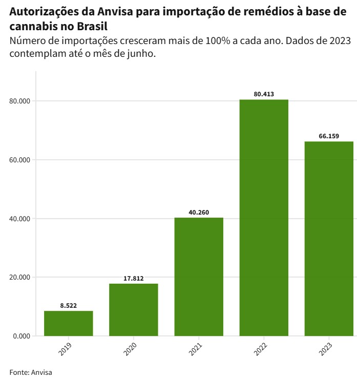 Segundo dados da Anvisa, solicitados e analisados pela Agência Tatu, desde 2019 houve um crescimento anual de mais de 100% no número de importações desses medicamentos. Para ter uma noção do aumento, o número de autorizações concedidas em 2022 foi de 80.413, enquanto em 2023, somente até junho, o número já chega a 66.159.