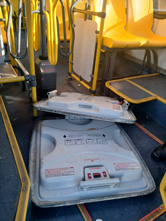 Os vândalos forçaram a porta de desembarque central do ônibus, danificando o equipamento e acessando o veículo sem pagamento da passagem.