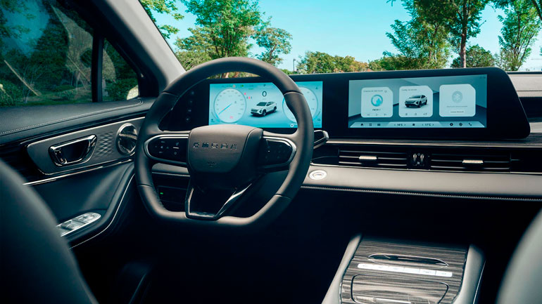 Internamente, os dois SUVs oferecem múltiplas telas digitais, conectividade e conforto. No OMODA5 SHSH, há duas telas curvas de 12,3″ (painel + multimídia), sistema infotainment com chip Qualcomm 8155, carregador de celular por indução de 50W com resfriamento ativo.