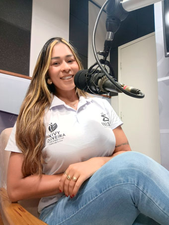 A empresária e educadora física Vivy Oliveira fez nessa segunda-feira (22 de dezembro), a abertura do verão, na Rádio Cidade FM 104,9, na cidade de Guanambi, na Bahia.