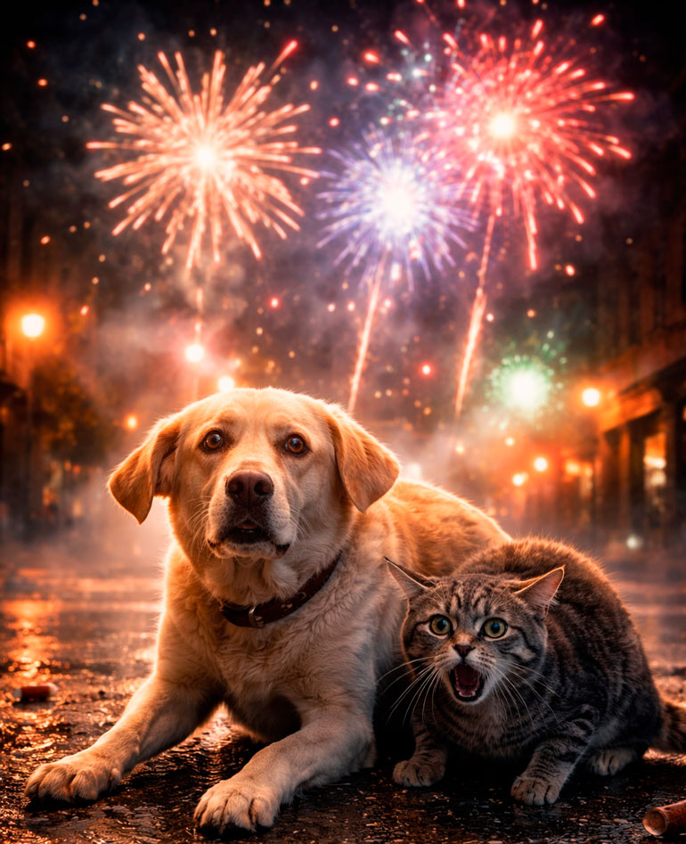 Atenção aos sons intensos - O barulho dos fogos de artifício costuma ser incômodo para os pets. Reduzir estímulos sonoros, manter portas e janelas fechadas e utilizar sons contínuos, como música suave ou TV, pode ajudar a trazer sensação de segurança.