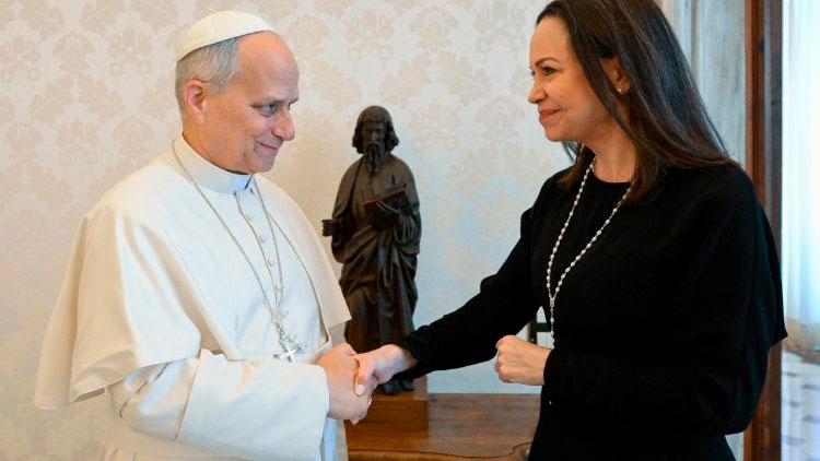 O Papa Leão XIV encontrou-se nessa segunda-feira (12 de janeiro) com a venezuelana Maria Corina Machado, vencedora do Prêmio Nobel da Paz em 2025,.