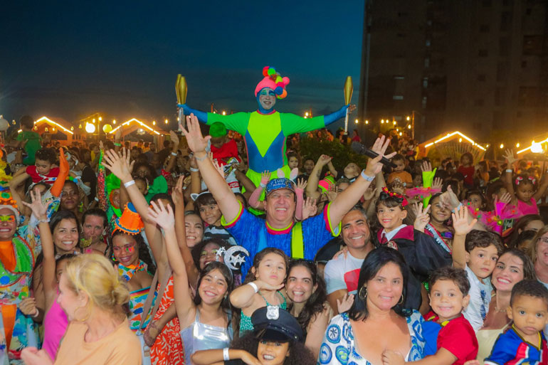 A programação inclui oficinas interativas, brincadeiras e a presença de personagens lúdicos.