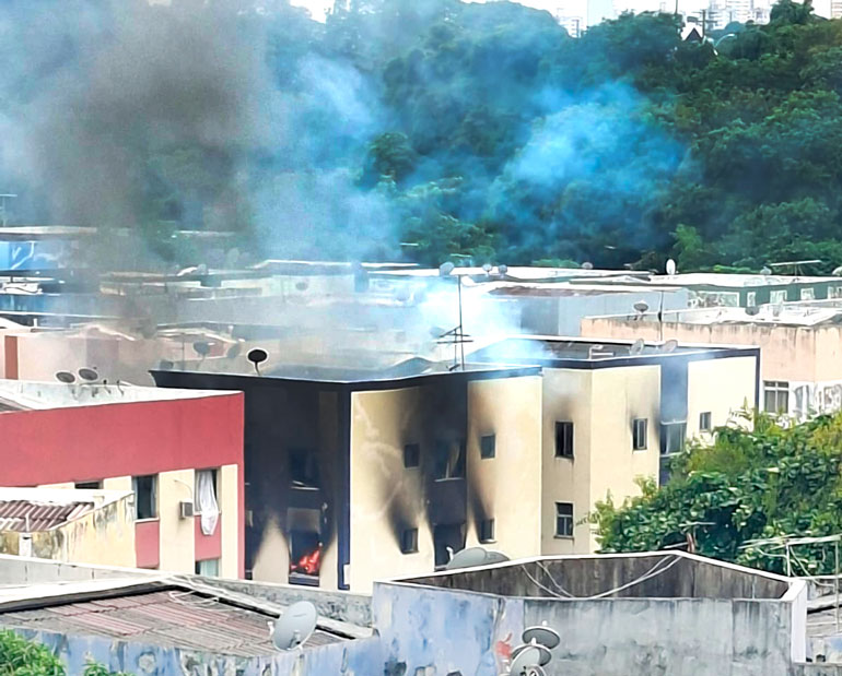 O fogo teve início por volta das 10h30, após uma explosão causada por vazamento de gás de cozinha (GLP) em um dos apartamentos, segundo o Corpo de Bombeiros Militar da Bahia (CBMBA).