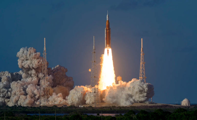 O foguete Space Launch System (SLS) decolou do Centro Espacial Kennedy, na Flórida, levando quatro astronautas a bordo da nave Orion em uma jornada de aproximadamente dez dias ao redor do satélite natural da Terra.