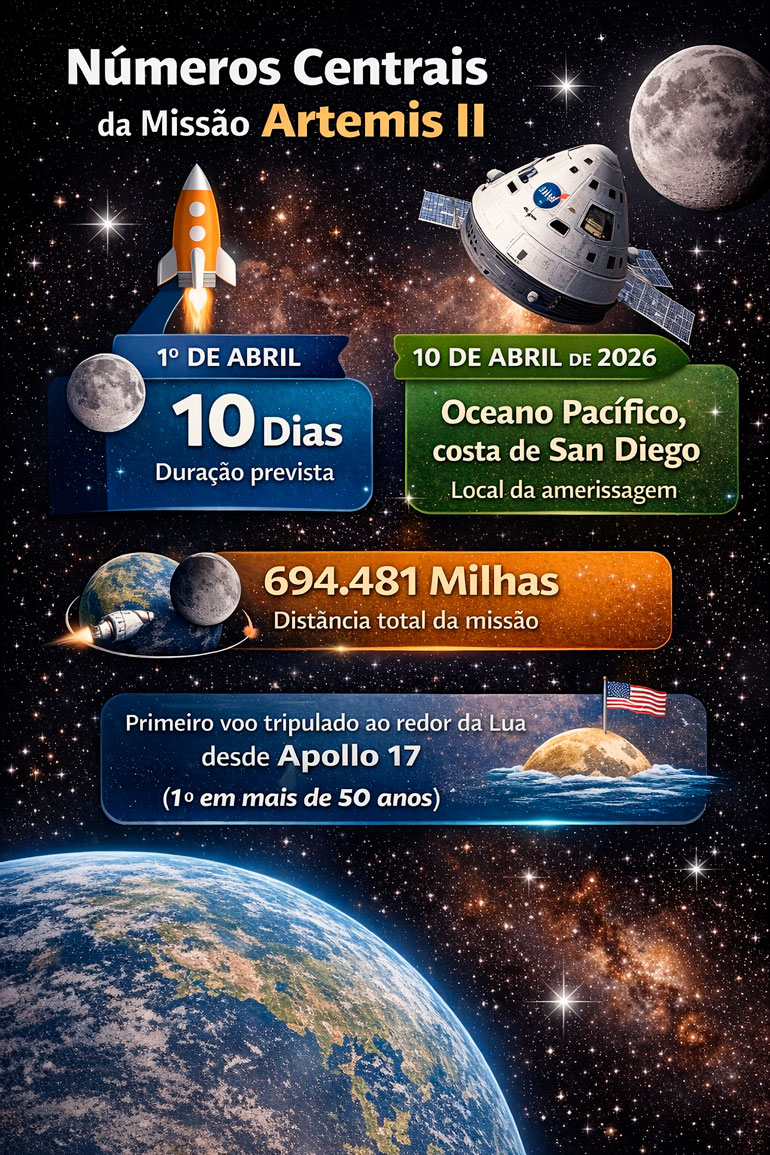 A missão ganha peso histórico por recolocar astronautas na vizinhança da Lua pela primeira vez desde a era Apollo. Durante décadas, voos tripulados dos Estados Unidos ficaram concentrados em órbita baixa, como nas operações do ônibus espacial e da Estação Espacial Internacional, a ISS, sigla em inglês para International Space Station.